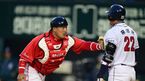 [OSEN=창원, 이대선 기자] 24일 오후 창원 마산야구장에서 열린 2013 한국야쿠르트 세븐프로야구 NC 다이노스와 KIA 타이거즈의 경기, 경기에 앞서 KIA 김상훈이 포수 훈련을 하고 있다. KIA 타이거즈의 광속 우완 헨리 소사가 시즌 3승