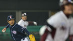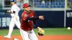 [OSEN=창원, 이대선 기자] 25일 오후 창원 마산야구장에서 열린 2013 한국야쿠르트 세븐프로야구 NC 다이노스와 KIA 타이거즈의 경기, 4회초 2사 1,2에서 NC 지석훈의 타구를처리하다 넘어진KIA 서재응이 앉은 채 1루로 송구하고 있다.