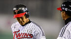 [OSEN=잠실, 지형준 기자] 25일 오후 서울 잠실야구장에서 열린 '2013 한국야쿠르트 세븐 프로야구' LG 트윈스와 삼성 라이온스의 경기, 5회말 1사 3루에서 LG 정주현이 희생플라이로 동점을 만들고 김인호 코치와 하이파이브를 하고