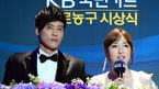 [OSEN= 곽영래 기자] 25오후 서울 광진구 건국대 새천년 기념관에서 진행된 '2012-2013 KB국민카드 프로농구 시상식'에서 SBS-ESPN 우지원 해설위원과 장유례 아나운서가 인사말을 전하고 있다. 시상식에서는 정규리그 MVP와 감독상, 신