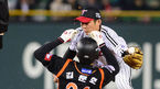 [OSEN=잠실 ,백승철 기자] 26일 오후 서울 잠실구장에서 열린 '2013 한국야쿠르트 세븐 프로야구' LG 트윈스와 롯데 자이언츠의 경기 5회말 2사 2루 정성훈의 직선타구를 잡은 박준서가 덕아웃으로 향하며 유먼과 하이파이브를 하고
