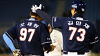 [OSEN=창원, 이대선 기자] 26일 오후 창원 마산야구장에서 열린 2013 한국야쿠르트 세븐프로야구 NC 다이노스와 두산 베어스의 경기, 3회초 2사 만루에서 몸에 맞는 볼로 출루한 두산 오재원이 김민재 코치의 위로를 받고 있다. NC 다