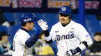 [OSEN=창원, 이대선 기자] 26일 오후 창원 마산야구장에서 열린 2013 한국야쿠르트 세븐프로야구 NC 다이노스와 두산 베어스의 경기, 4회말 무사에서 NC 이호준이 중월 솔로 홈런을 치고 홈에서 권희동과 하이파이브를 하고 있다. NC