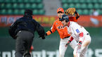 [OSEN=창원, 이대선 기자] 26일 오후 창원 마산야구장에서 열린 2013 한국야쿠르트 세븐프로야구 NC 다이노스와 두산 베어스의 경기, 3회초 1사 1,3루에서 두산 김현수 타석 때 1루주자 민병헌이 도루에 성공하고 있다. NC 다이노스의