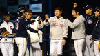 [OSEN=창원, 이대선 기자] 26일 오후 창원 마산야구장에서 열린 2013 한국야쿠르트 세븐프로야구 NC 다이노스와 두산 베어스의 경기, 3회초 2사 만루에서 밀어내기 볼넷으로 홈을 밟은 3루주자 민병헌이 덕아웃에서 동료들의 축하를