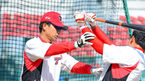 [OSEN=창원, 이대선 기자] 26일 오후 창원 마산야구장에서 열린 2013 한국야쿠르트 세븐프로야구 NC 다이노스와 두산 베어스의 경기, 경기에 앞서 두산 김동주가 NC 김광림 코치와 인사를 나누고 있다. NC 다이노스의 토종 에이스 이