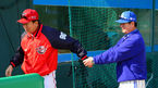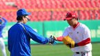 [OSEN=광주,박준형 기자] 26일 오후 광주 무등구장에서 열리는 '2013 한국야쿠르트 세븐 프로야구' KIA 타이거즈와 삼성 라이온즈의 경기에 앞서 KIA 이범호와 삼성 이승엽이 인사를 나누고 있다 삼성과 KIA의 경기는 '미리보는 한국