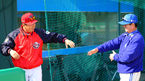 [OSEN=광주,박준형 기자] 26일 오후 광주 무등구장에서 열리는 '2013 한국야쿠르트 세븐 프로야구' KIA 타이거즈와 삼성 라이온즈의 경기에 앞서 전 야구선수 홍현우가 KIA 김상현과 이야기를 나누고 있다 삼성과 KIA의 경기는 '미리