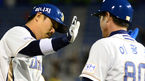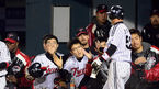 [OSEN=잠실 ,백승철 기자] 26일 오후 서울 잠실구장에서 열린 '2013 한국야쿠르트 세븐 프로야구' LG 트윈스와 롯데 자이언츠의 경기 9회말 2사 1,2루 오지환의 1타점 적시타에 홈을 밟은 손주인이 덕아웃에서 동료들과 하이파이브를