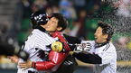 [OSEN=잠실 ,백승철 기자] 26일 오후 서울 잠실구장에서 열린 '2013 한국야쿠르트 세븐 프로야구' LG 트윈스와 롯데 자이언츠의 경기 9회말 2사 1,3루 이진영이 끝내기 2루타를 친 후 동료들과 기쁨을 나누고 있다. LG가 이진영의 한 방