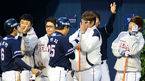 [OSEN=창원, 이대선 기자] 27일 오후 창원 마산야구장에서 열린 2013 한국야쿠르트 세븐프로야구 NC 다이노스와 두산 베어스의 경기, 6회초 무사 1루에서 두산 양의지가 좌월 투런 홈런을 치고 덕아웃에서 동료들의 축하를 받고 있