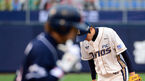 [OSEN=창원, 이대선 기자] 27일 오후 창원 마산야구장에서 열린 2013 한국야쿠르트 세븐프로야구 NC 다이노스와 두산 베어스의 경기, 1회초 무사 1루에서 NC 이태양이 두산 정수빈에 몸에 맞는 볼로 출루를 허용하고 있다. NC는 신예