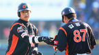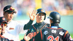 [OSEN=광주,박준형 기자] 27일 오후 광주 무등구장에서 열린 '2013 한국야쿠르트 세븐 프로야구' KIA 타이거즈와 삼성 라이온즈의 경기, 8회말 2사 2루 KIA 안치홍의 1타점 적시타때 2루 주자 최희섭이 홈을 밟은 후 동료들의 축하를 받