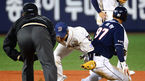 [OSEN=창원, 이대선 기자] 27일 오후 창원 마산야구장에서 열린 2013 한국야쿠르트 세븐프로야구 NC 다이노스와 두산 베어스의 경기, 9회초 무사 1루에서 두산 이원석 타석 때 1루주자 오재원이 도루에 실패하고 있다. NC는 신예 잠수