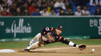 [OSEN=대전, 김영민 기자] 1일 오후 대전구장에서 열린 '2013 한국야쿠르트 세븐 프로야구' 한화 이글스와 롯데 자이언츠경기, 3회말 2사 1,2루 2루 주자 오선진의 3루 도루때 롯데 강민호 포수의 악송구로 황재균 3루수가 다이빙캐치