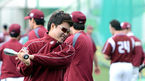 [OSEN=대구, 곽영래 기자] 1일 오후 대구구장에서 열리는 '2013 한국야쿠르트 세븐 프로야구' 삼성 라이온즈와 넥센 히어로즈의 경기에 앞서 넥센 염경엽 감독이 박병호의 미트를 길들이고 있다. 삼성 라이온즈 투수 장원삼이 4승