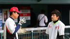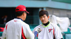 [OSEN=대구, 곽영래 기자] 1일 오후 대구구장에서 열리는 '2013 한국야쿠르트 세븐 프로야구' 삼성 라이온즈와 넥센 히어로즈의 경기에 앞서 삼성 박성민이 이승엽과 이야기를 나누며 미소를 짓고 있다. 삼성 라이온즈 투수 장원