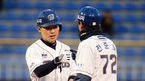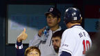[OSEN=창원, 지형준 기자] 2일 오후 창원 마산구장에서 열린 NC 다이노스와 LG 트윈스의 경기, 2회말 1사 1루에서 NC 지석훈이 1타점 적시 2루타를 날리고 전준호 코치와 주먹을 맞대고 있다. LG는 우규민을 선발투수로 내세웠다. 이