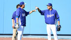 [OSEN=로스앤젤레스, 곽영래 기자] 2일(이하 한국시간) 미국 캘리포니아 로스앤젤레스 다저스타디움에서 열리는 LA 다저스와 콜로라도 로키스의 경기를 앞두고 류현진이 돈 매팅리 감독(왼쪽 세번째)과 인사를 나누고 있다. 류현