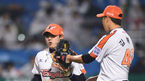 [OSEN=부산, 지형준 기자] 3일 오후 부산 사직구장에서 열린 롯데 자이언츠와 삼성 라이온스의 경기, 8회초 2사에서 삼성 조동찬이 솔로포를 날리고 더그아웃에서 류중일 감독과 주먹을 맞대고 있다. 삼성은 외국인 투수 아네우리