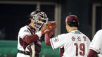 [OSEN=목동, 곽영래 기자] 3일 오후 서울 목동구장에서 열린 '2013 한국야쿠르트 세븐 프로야구' 넥센 히어로즈와 KIA 타이거즈의 경기, 8회초 2사 만루 위기를 무실점으로 막아낸 넥센 박동원 과 송신영이 기뻐하고 있다. KIA는 선두