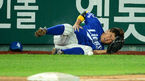 [OSEN=부산, 지형준 기자] 3일 오후 부산 사직구장에서 열린 롯데 자이언츠와 삼성 라이온스의 경기, 6회말 무사 1루에서 삼성 박석민이 롯데 김대우의 파울플라이를 아깝게 놓치며 펜스에 부딪히고 괴로워하고 있다. 삼성은 외국