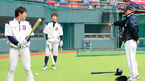 [OSEN=잠실, 이대선 기자] 3일 오후 서울 잠실야구장에서 열린 2013 한국야쿠르트 세븐프로야구 두산 베어스와 LG 트윈스의 경기, 경기에 앞서 두산 김진욱 감독이 훈련 중인 박세혁, 정수빈과 이야기를 나누고 있다. 두산 베어스는