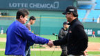 [OSEN=부산, 지형준 기자] 3일 오후 부산 사직구장에서 열리는 롯데 자이언츠와 삼성 라이온스의 경기, 경기에 앞서 삼성 류중일 감독과 롯데 김시진 감독이 악수를 하며 인사를 나누고 있다. 삼성은 외국인 투수 아네우리 로드리