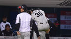 [OSEN=잠실, 김영민 기자] 4일 오후 잠실구장에서 열린 '2013 한국야쿠르트 세븐 프로야구'LG 트윈스와 두산 베어스 경기,8회초 1사 만루 손주인 희생플라이때 3루주자 이진영 태그업을 하였으나 홈에서 태그아웃처리되며 부상을 입