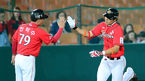 [OSEN=목동, 민경훈 기자] 5일 오후 서울 목동야구장에서 열린 2013 한국야쿠르트 세븐프로야구 넥센 히어로즈와 KIA 타이거즈의 경기, 4회말 1사 주자 2,3루 KIA 나지완이 좌익수 앞 2타점 적시타를 날린 후 1루에서 김평호 코치와 기