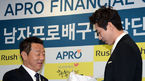 [OSEN=곽영래 기자] 6일 오전 서울 강남구 역삼동 러시앤캐시 본사사옥에서 진행된 러시앤캐시 '남자 프로배구단 창단 및 김세진 감독 선임' 기자회견에서 러시앤캐시 최윤 회장이 김세진 감독에게 꽃다발을 건네고 있다. 남자