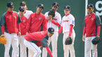 [OSEN=문학, 민경훈 기자] 7일 오후 인천 문학구장에서 열린 2013 한국야쿠르트 세븐프로야구 SK 와이번스와 두산 베어스의 경기 전 SK 유니폼을 입은 진해수의 수비훈련을 투수들이 지켜보고 있다. 이 날 경기에서 SK와 두산은 선
