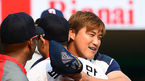 [OSEN=문학, 민경훈 기자] 7일 오후 인천 문학구장에서 열린 2013 한국야쿠르트 세븐프로야구 SK 와이번스와 두산 베어스의 경기 전 두산 홍성흔이 SK 박진만과 포옹을 하고 있다. 이 날 경기에서 SK와 두산은 선발로 김광현과 이재