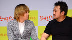 [OSEN=민경훈 기자] 7일 오전 서울 광진구 롯데시네마 건대입구에서 열린 영화 ‘뜨거운 안녕’(감독 남택수) 제작발표회에서 이홍기와 마동석이 손을 잡고 얘기를 나누고 있다. 이 영화는 전직 조폭 출신의 골초 뇌종양 환자 마