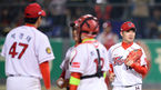 [OSEN=인천, 지형준 기자] 8일 오후 인천 문학구장에서 열린 2013 한국야쿠르트 세븐프로야구 SK 와이번스와 두산 베어스의 경기, 7회초 무사 1루에서 SK 성준 코치가 마운드에 올라 정상호, 진해수와 이야기를 나누고 더그아웃으로