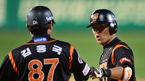 [OSEN=광주,박준형 기자] 8일 오후 광주 무등구장에서 열린 '2013 한국야쿠르트 세븐 프로야구' KIA 타이거즈와 롯데 자이언츠의 경기, 5회초 2사 2루 롯데 강민호가 1타점 적시타를 날린후 김응국 코치와 하이파이브를 하고 있다. 전