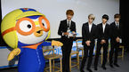 [OSEN=정송이 기자] 가수 씨엔블루가 8일 오전 서울 서대문구 필름포럼에서 진행된 국제구호단체 기아대책 홍보대사에 위촉됐다. 씨엔블루 멤버 정용화가 뽀로로와 악수를 나누고 있다. 홍보대사 씨엔블루는 앞으로 기아대책의