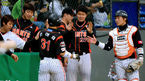 [OSEN=광주,박준형 기자] 9일 오후 광주 무등구장에서 열린 '2013 한국야쿠르트 세븐 프로야구' KIA 타이거즈와 롯데 자이언츠의 경기, 1회초 2사 1,2루 롯데 전준우의 선추 1타점 적시타때 2루 주자 손아섭이 홈을 밟은 후 동료들의