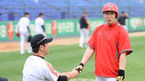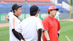 [OSEN=광주,박준형 기자] 9일 오후 광주 무등구장에서 열린 '2013 한국야쿠르트 세븐 프로야구' KIA 타이거즈와 롯데 자이언츠의 경기에 앞서 KIA 나지완이 황재균과 이야기를 하고 있다. 전날 경기에서 나지완의 강습타구를 황재균