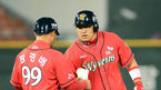 [OSEN=목동 ,백승철 기자] 10일 오후 서울 목동구장에서 열린 '2013 한국야쿠르트 세븐 프로야구' 넥센 히어로즈와 SK 와이번스의 경기 4회초 1사 2,3루 김강민의 2타점 2루타에 홈을 밟은 조인성과 조성우가 덕아웃에서 동료들과 하