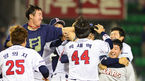 [OSEN=잠실 ,백승철 기자] 11일 오후 서울 잠실구장에서 열린 '2013 한국야쿠르트 세븐 프로야구' 두산 베어스와NC 다이노스의 경기 종료 후 민병헌이 동료들과 승리의 기쁨을 나누고 있다. 쉽게 이길 듯 했던 경기에서 동점을 내줬
