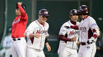 [OSEN=잠실 ,백승철 기자] 11일 오후 서울 잠실구장에서 열린 '2013 한국야쿠르트 세븐 프로야구' 두산 베어스와 NC다이노스의 경기 9회초 1사 1,2루 대타 박정준의 2타점 2루타에 홈을 밟은 2루주자 권희동이 덕아웃에서 동료들과 하
