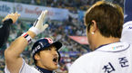 [OSEN=잠실 ,백승철 기자] 11일 오후 서울 잠실구장에서 열린 '2013 한국야쿠르트 세븐 프로야구'두산 베어스와 NC다이노스의 경기 8회말 1사 1루 홍성흔이 투런홈런을 친 후 덕아웃에서 동료들과 하이파이브를 하고 있다. 두산 베