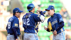 [OSEN=부산,박준형 기자] 11일 오후 부산 사직구장에서 열린 '2013 한국야쿠르트 세븐 프로야구' 롯데 자이언츠와 LG 트윈스의 경기, 6회초 2사 만루 위기 LG 문선재를 외야플라이로 아웃처리 시킨 롯데 김승회 투수가 한숨을 내쉬고