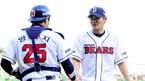 [OSEN=잠실 ,백승철 기자] 11일 오후 서울 잠실구장에서 열린 '2013 한국야쿠르트 세븐 프로야구'두산 베어스와 NC다이노스의 경기 6회말까지 무실점으로 막은 노경은이 덕아웃으로 향하며 양의지와 하이파이브를 하고 있다. 두산