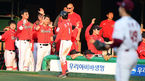 [OSEN=목동, 지형준 기자] 11일 오후 서울 목동야구장에서 열린 '2013 한국야쿠르트 세븐 프로야구' 넥센 히어로즈와 SK 와이번스의 경기, 6회초 1사 3루에서 SK 조동화가 김상현의 우익수 플라이에 홈을 밟고 동료선수들과 기뻐하고