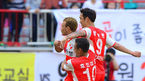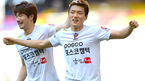[OSEN=부산,박준형 기자] 11일 오후 부산아시아드경기장에서 열린 현대오일뱅크 K리그 클래식 2013 부산 아이파크와 포항 스틸러스의 경기, 후반 포항 이명주가 동점골을 넣고 환호하고 있다 리그 선두 포항(6승4무·승점 22)은 개