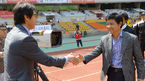 [OSEN=부산,박준형 기자] 11일 오후 부산아시아드경기장에서 열린 현대오일뱅크 K리그 클래식 2013 부산 아이파크와 포항 스틸러스의 경기, 경기에 앞서 포항 황선홍 감독과 부산 윤성효 감독이 악수를 나누고 있다 리그 선두 포