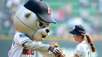 [OSEN=잠실, 지형준 기자] 12일 오후 서울 잠실구장에서 열린 2013 한국야쿠르트 세븐프로야구 두산 베어스와 NC 다이노스의 경기, 경기에 앞서 시구자로 나선 개그우먼 두산 마스코트 철웅이와 손을 잡고 그라운드를 돌고 있다. NC