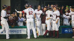 [OSEN=목동, 민경훈 기자] 12일 오후 서울 목동구장에서 2013 한국야쿠르트 세븐프로야구 넥센 히어로즈와 SK 와이번스의 경기에서 6회말 1사 주자 만루 넥센 장기영의 역전 적시타때 김민성이 홈을 밟은 후 서건창이 실책으로 홈에